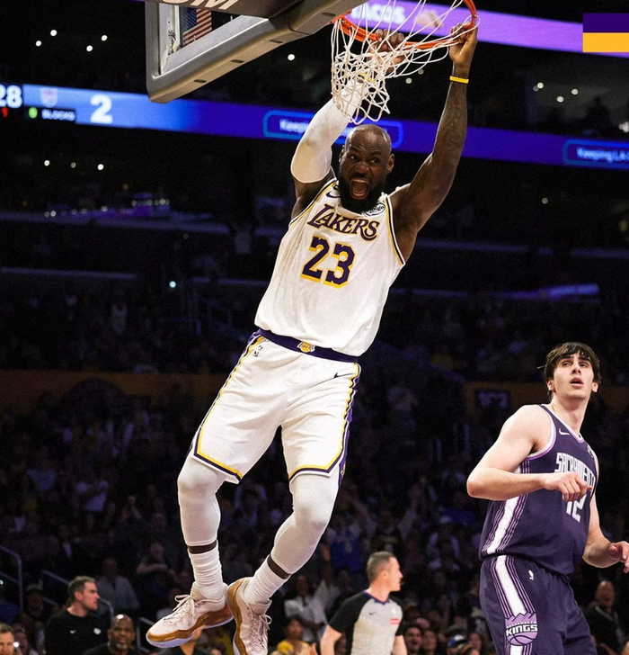 27分钟,15投8中,24分1篮板5助攻2抢断1盖帽。这是詹姆斯交出的答卷。一次空接暴扣,一次双手重扣,末节连中两记三分,下场后为儿子的进球开怀大笑。这是詹姆斯带给湖人的能量。北京时间3月2日,湖人主场128-104大胜国王,豪取两连胜。詹姆斯一战连破两大纪录:1. 湖人生涯助攻数超越迈克尔-库珀,升至队史第五。2. 41岁后第21次砍下20+,再创历史新高...